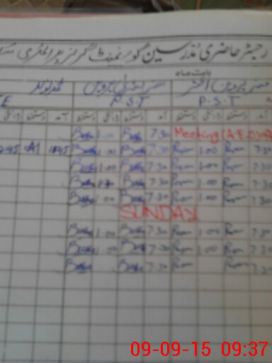 | CNIC | Full Name | Designation | R/C | Absence During Last Calender Month |