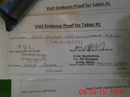 | Attendance Register | Head Teacher | MEA with School | Visit Proof |