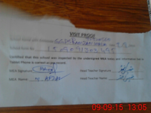 | Attendance Register | Head Teacher | MEA with School | Visit Proof |
