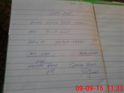 | Monitoring Date: 09-09-2015 | Start Time: 09-09-2015 11:21 AM | End Time: 09-09-2015 11:36 AM | Name of MEA: Gh**** Ha**** | |