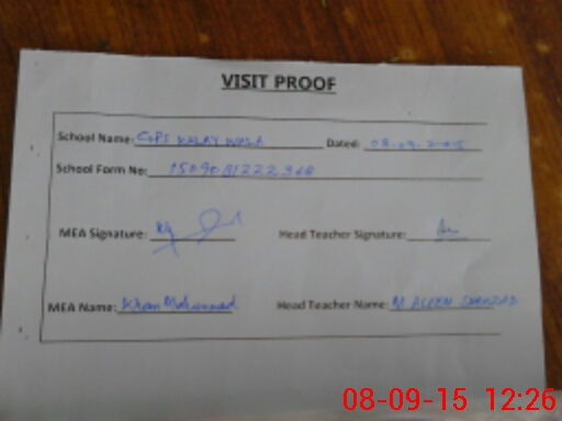 | Attendance Register | Head Teacher | MEA with School | Visit Proof |