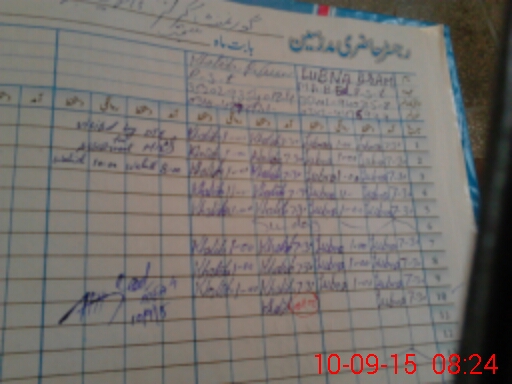 | CNIC | Full Name | Designation | R/C | Absence During Last Calender Month |