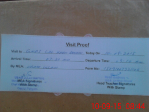 | Attendance Register | Head Teacher | MEA with School | Visit Proof |