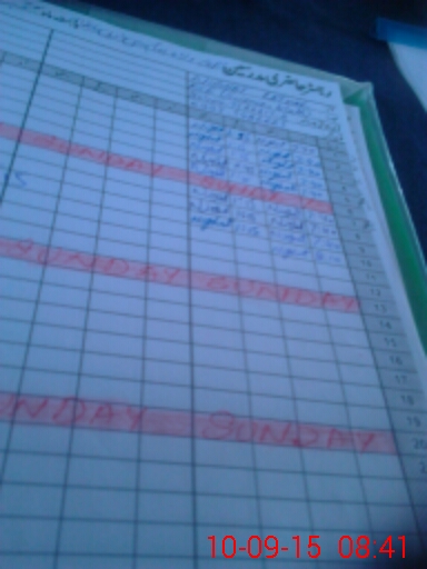 | CNIC | Full Name | Designation | R/C | Absence During Last Calender Month |