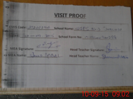 | Attendance Register | Head Teacher | MEA with School | Visit Proof |
