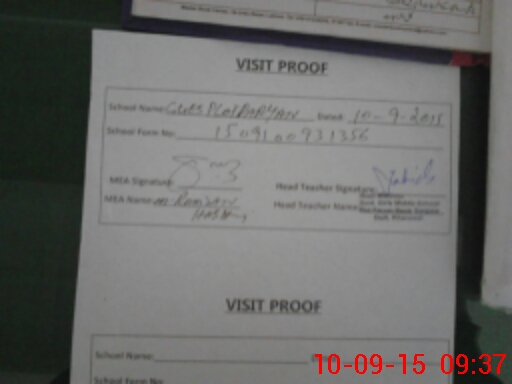 | Attendance Register | Head Teacher | MEA with School | Visit Proof |