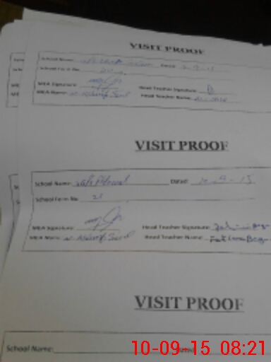 | Attendance Register | Head Teacher | MEA with School | Visit Proof |
