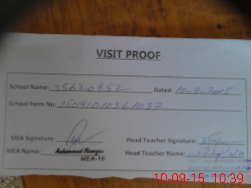 | Attendance Register | Head Teacher | MEA with School | Visit Proof |