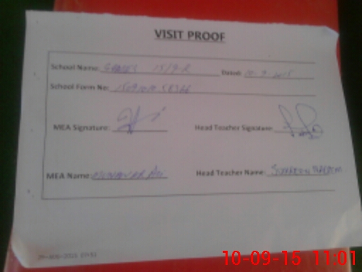 | Attendance Register | Head Teacher | MEA with School | Visit Proof |