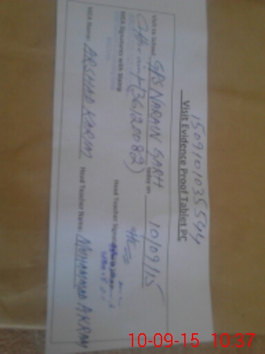 | School Visited by School Health & Nutrition Supervisor (No. of Visits) | 1 | Name1: | M Sajid | Name2: | |