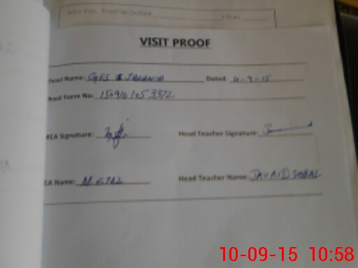 | Attendance Register | Head Teacher | MEA with School | Visit Proof |