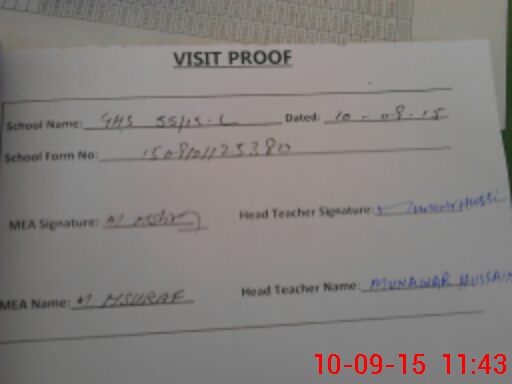 | Attendance Register | Head Teacher | MEA with School | Visit Proof |