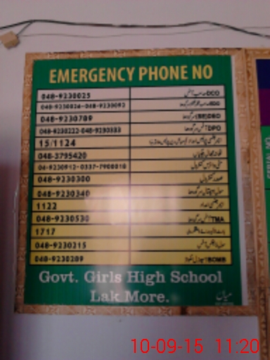 | EMIS Code: 38420229 | Name of School: GGHS LAK MORE | |||