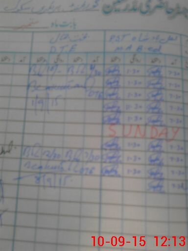 | CNIC | Full Name | Designation | R/C | Absence During Last Calender Month |