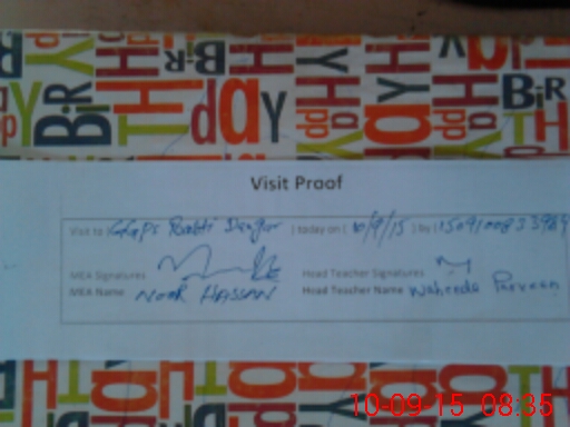 | Attendance Register | Head Teacher | MEA with School | Visit Proof |