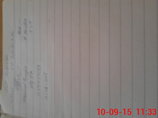 | Monitoring Date: 10-09-2015 | Start Time: 10-09-2015 10:55 AM | End Time: 10-09-2015 11:34 AM | Name of MEA: Mu**** Ra**** BN**** 37 | |