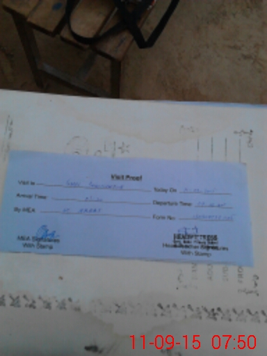 | Monitoring Date: 11-09-2015 | Start Time: 11-09-2015 07:30 AM | End Time: 11-09-2015 07:53 AM | Name of MEA: Mu**** Ab**** | |