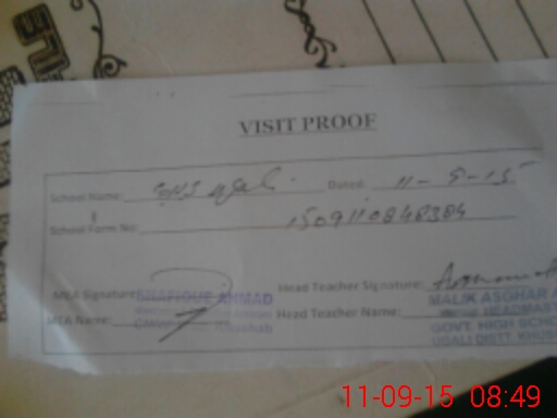 | Attendance Register | Head Teacher | MEA with School | Visit Proof |