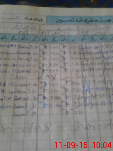 | CNIC | Full Name | Designation | R/C | Absence During Last Calender Month |