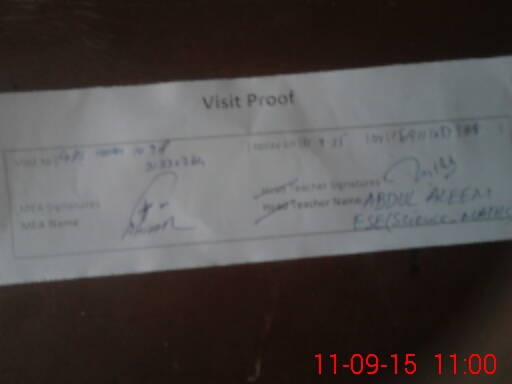 | Attendance Register | Head Teacher | MEA with School | Visit Proof |