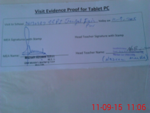 | Attendance Register | Head Teacher | MEA with School | Visit Proof |