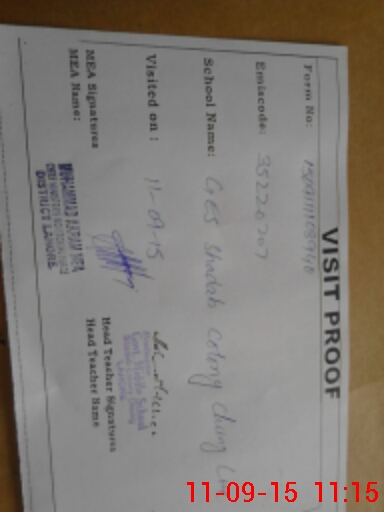 | EMIS Code: 35220207 | Name of School: GES SHADAB COLONY CHUNG LAHORE | |||
