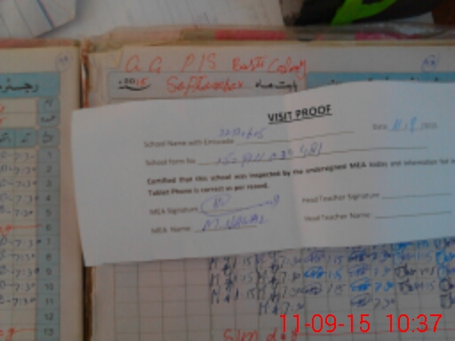 | Attendance Register | Head Teacher | MEA with School | Visit Proof |