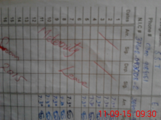 | Monitoring Date: 11-09-2015 | Start Time: 11-09-2015 09:15 AM | End Time: 11-09-2015 09:34 AM | Name of MEA: MU**** IR**** (R**** | |