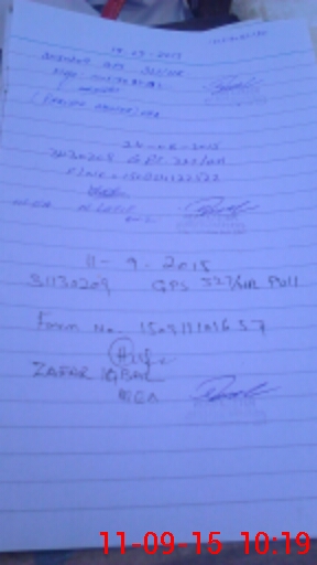 | Monitoring Date: 11-09-2015 | Start Time: 11-09-2015 09:46 AM | End Time: 11-09-2015 10:21 AM | Name of MEA: Za**** Iq**** BN**** | |