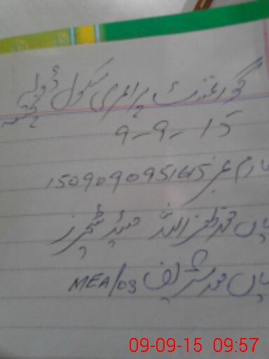 | Monitoring Date: 09-09-2015 | Start Time: 09-09-2015 09:43 AM | End Time: 09-09-2015 10:00 AM | Name of MEA: BA**** HU**** SH**** | |