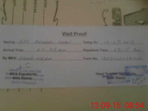 | Attendance Register | Head Teacher | MEA with School | Visit Proof |
