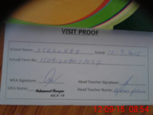 | Attendance Register | Head Teacher | MEA with School | Visit Proof |