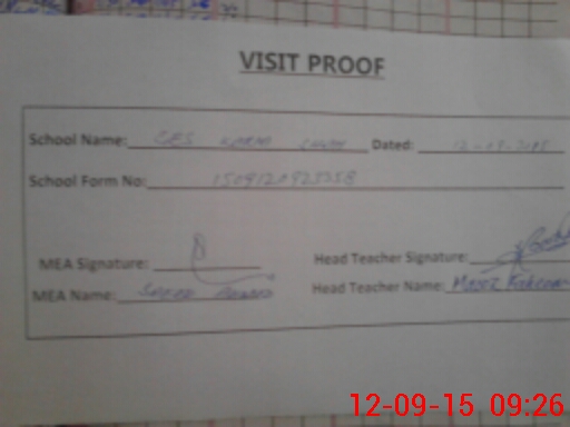 | Attendance Register | Head Teacher | MEA with School | Visit Proof |
