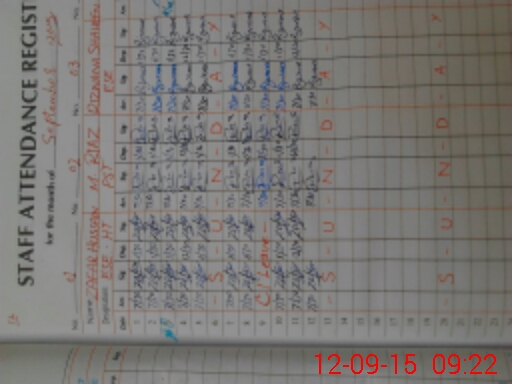 | Monitoring Date: 12-09-2015 | Start Time: 12-09-2015 08:59 AM | End Time: 12-09-2015 09:28 AM | Name of MEA: Kh**** Iq**** | |