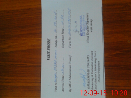 | Attendance Register | Head Teacher | MEA with School | Visit Proof |