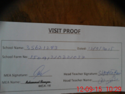| Attendance Register | Head Teacher | MEA with School | Visit Proof |