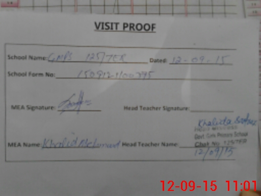 | Attendance Register | Head Teacher | MEA with School | Visit Proof |