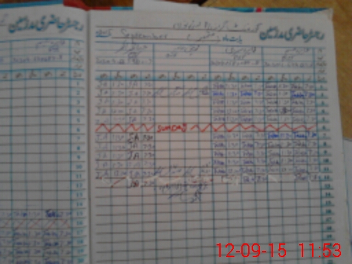 | CNIC | Full Name | Designation | R/C | Absence During Last Calender Month |