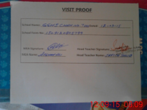 | Attendance Register | Head Teacher | MEA with School | Visit Proof |