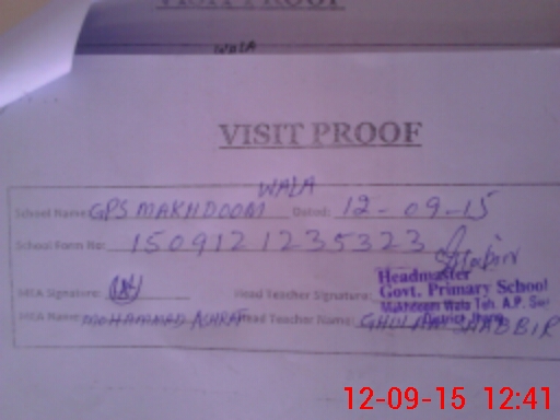 | Attendance Register | Head Teacher | MEA with School | Visit Proof |