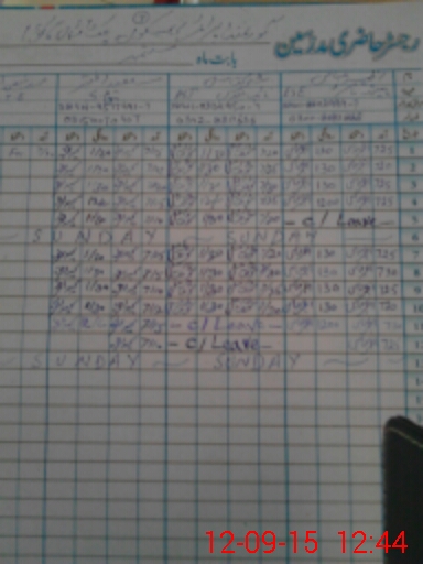 | CNIC | Full Name | Designation | R/C | Absence During Last Calender Month |