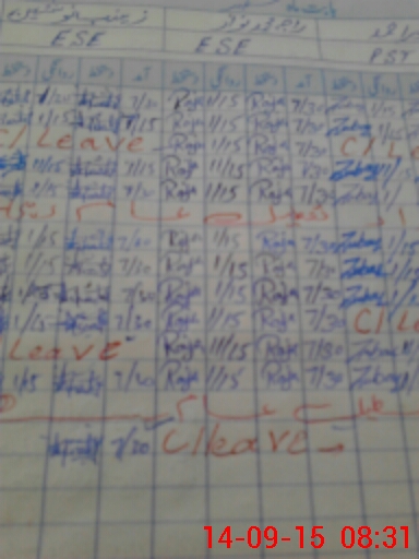 | CNIC | Full Name | Designation | R/C | Absence During Last Calender Month |
