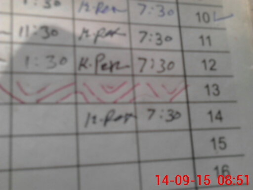 | Monitoring Date: 14-09-2015 | Start Time: 14-09-2015 08:37 AM | End Time: 14-09-2015 08:54 AM | Name of MEA: Z.**** M.Is**** | |