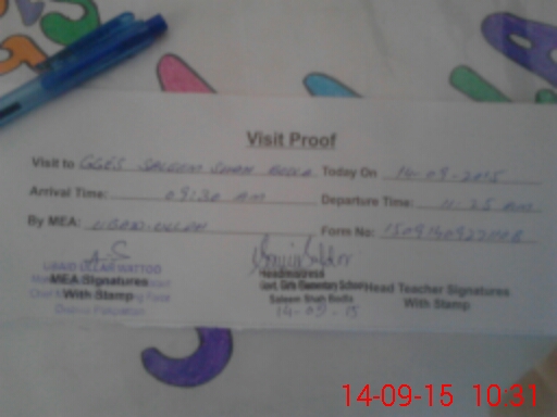 | Attendance Register | Head Teacher | MEA with School | Visit Proof |
