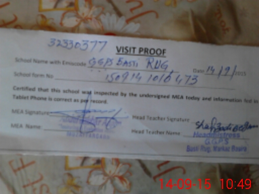 | Attendance Register | Head Teacher | MEA with School | Visit Proof |