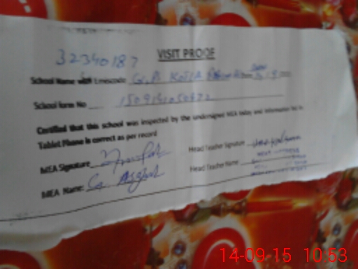 | Attendance Register | Head Teacher | MEA with School | Visit Proof |