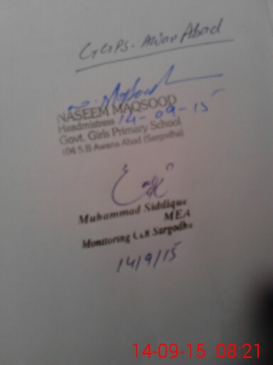 | District: SARGODHA | Tehsil: SARGODHA | Markaz: 49-NB - FEMALE | Level: Primary | |