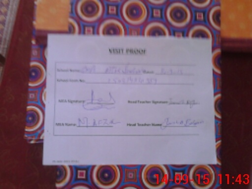| Attendance Register | Head Teacher | MEA with School | Visit Proof |