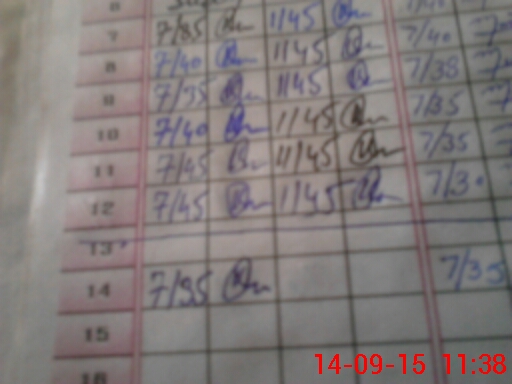 | Monitoring Date: 14-09-2015 | Start Time: 14-09-2015 11:22 AM | End Time: 14-09-2015 11:41 AM | Name of MEA: Z.**** M.Is**** | |