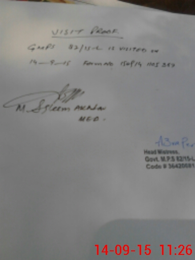 | EMIS Code: 36420681 | Name of School: GMPS CHAK NO. 82/15-L KACHA KHUH | |||